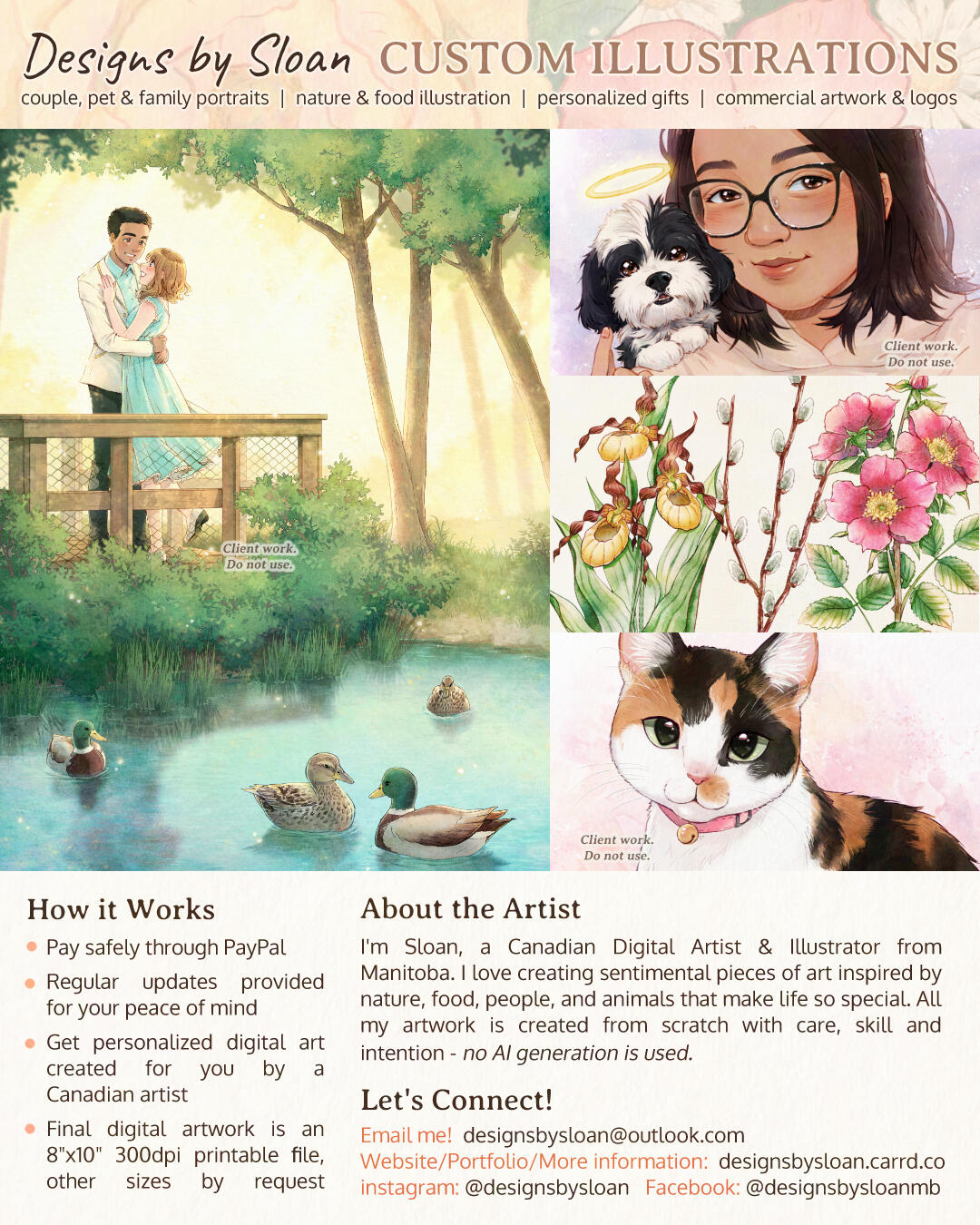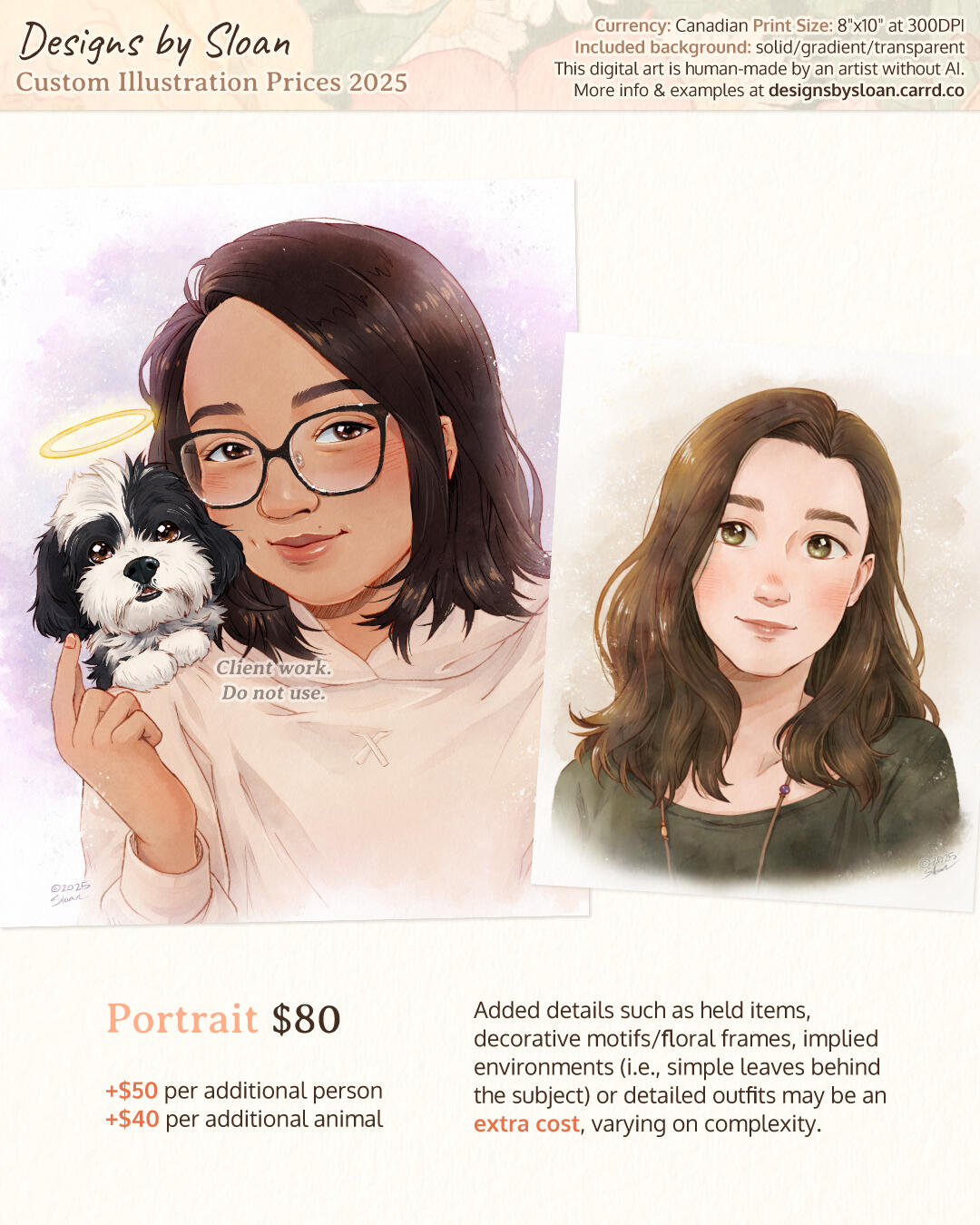 Have you started your Christmas shopping, but you’re not sure what to get that person who seems to have everything already? A personalized illustration from a local artist might be just what you’re looking for, and my art commissions are open!I love creating sentimental pieces of art inspired by nature, food, people and animals that make life so special; whether it's a couple portrait for a wedding gift, pet portrait for a memorial, or artwork inspired by Grandma's garden for a birthday. I'm also available for business / commercial-use projects!Commissions are OPEN as of October 2nd, 2025.Christmas deadline: Contact me no later than November 30th, 2025 for artwork to be ready for the holiday season; otherwise rush fees may apply. Limited slots available for reserve.